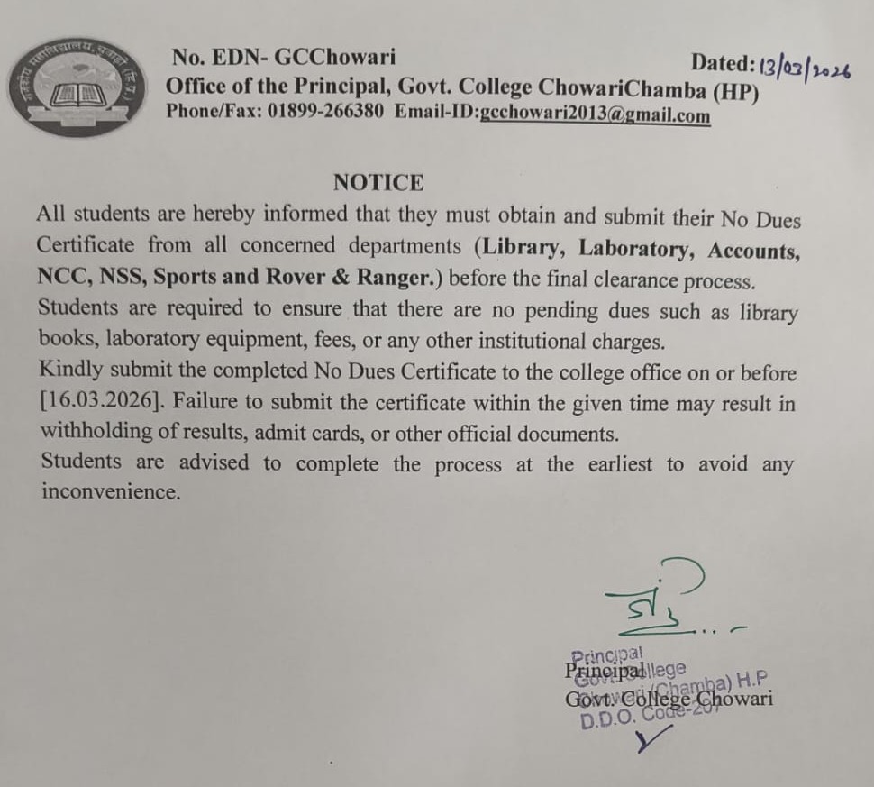 Government Post-Graduate College, Chowari a constituent college of Himachal Pradesh University, Shimla established in the year 1994, is the hub of education. College is recognized under section 2(f) and 12(B) of the UGC Act 1956. It is placed in the serene and picturesque lap of nature and the splendid beauty of Basodan Pass. Being centrally located it provides easy accessibility to students from different areas of Bhattiyat valley and adjoining District Kangra. The college believes in imparting quality education and commitment to service towards mankind through the luminary ideal of The Goddess Saraswati. Having made a mark on the educational horizon of the Himachal Pradesh University, our college strives to create an environment conducive to continuous academic, co-curricular activities and holistic development of students as well as staff members.